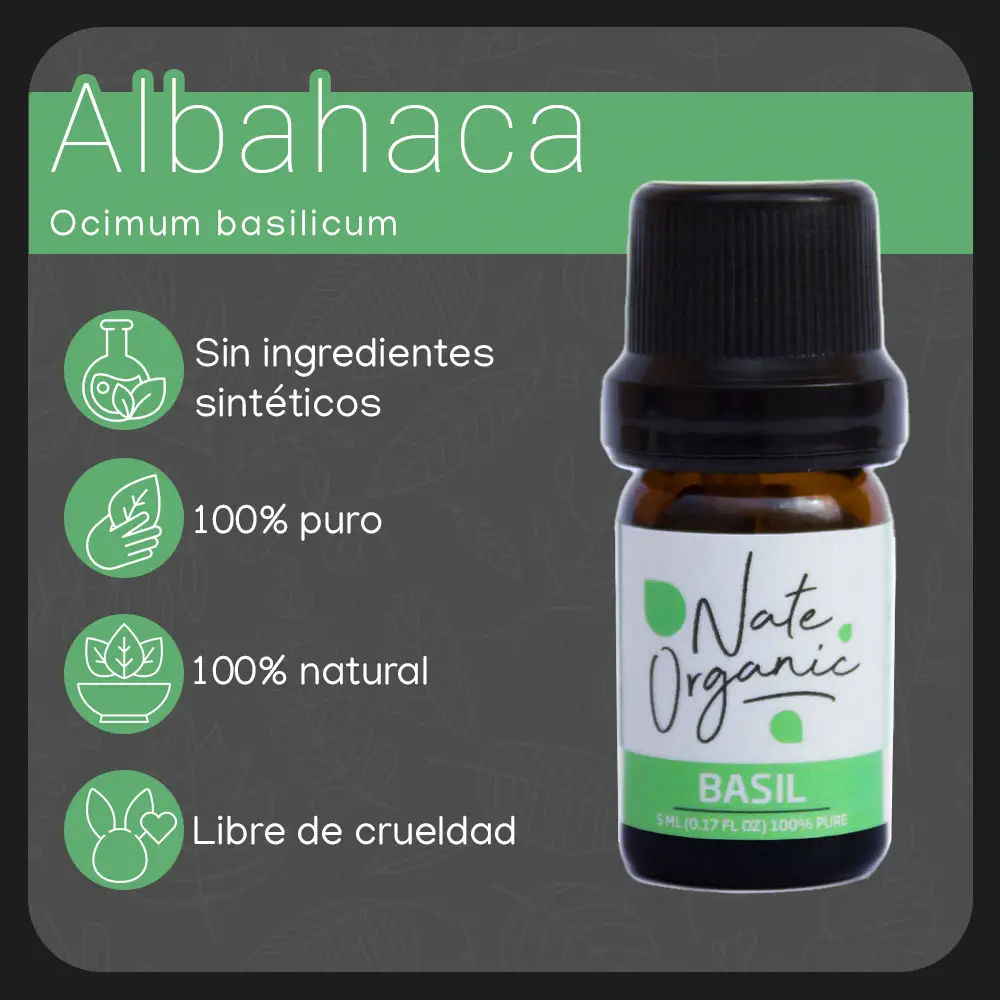 Su aroma fresco y herbal es perfecto para difundir en cualquier espacio, y sus propiedades antiinflamatorias, antioxidantes y antibacterianas lo hacen ideal para el cuidado personal. ¡Prueba nuestro aceite esencial de albahaca y mejora tu bienestar de manera natural!