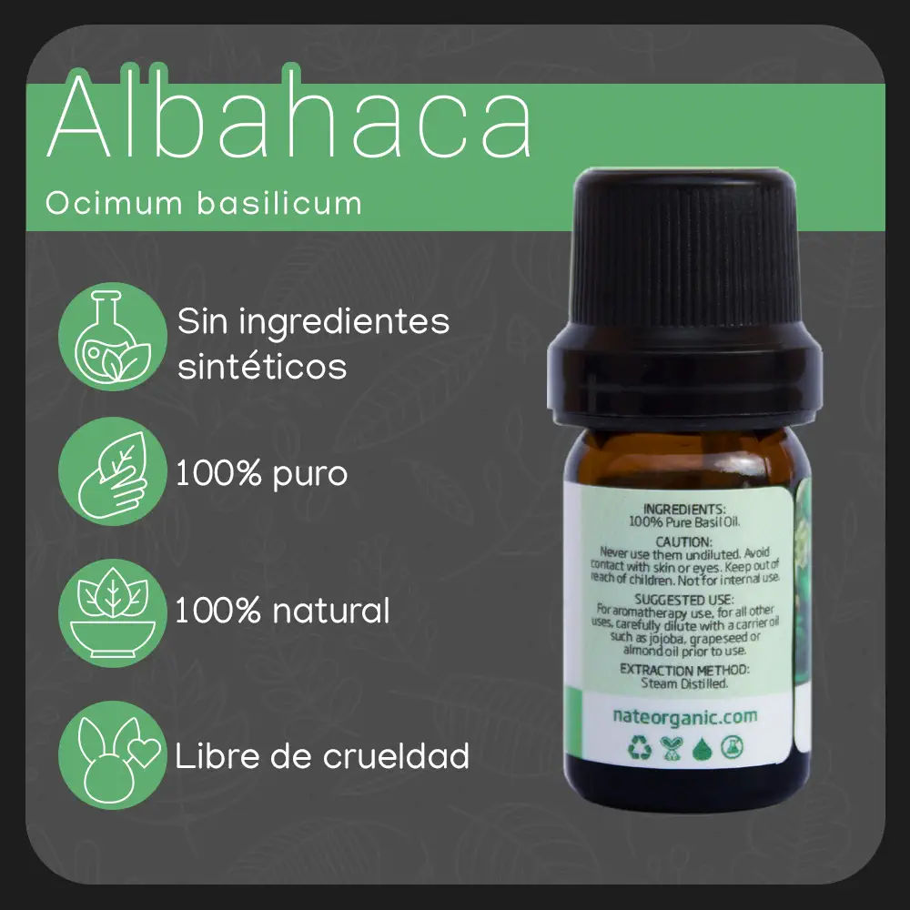 Descubre una manera natural y efectiva de mejorar tu bienestar con nuestro aceite esencial de albahaca de alta calidad de 5 ml. Nuestro aceite se obtiene de hojas frescas de albahaca y es destilado cuidadosamente para garantizar su pureza y calidad.