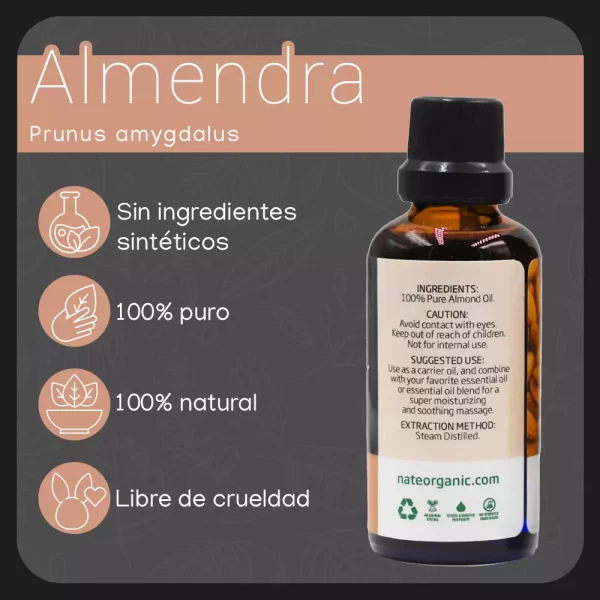 Descubre los sorprendentes beneficios del aceite de almendra en nuestra presentación de 50 ml. Derivado de las almendras dulces (Prunus amygdalus var. dulcis), nuestro aceite esencial es de alta calidad y versatilidad, proporcionándote numerosas ventajas en su uso, especialmente en el cuidado de la piel y el cabello.