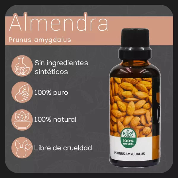 El aceite esencial de almendra es ideal para su uso en la piel y el cabello, proporcionando múltiples beneficios como: