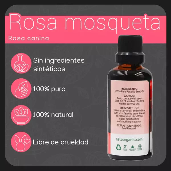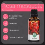 | Aceite de rosa mosqueta | 30 | Naranja | 3 | Mejora la salud de la piel, tonificante, equilibra el estado de ánimo |