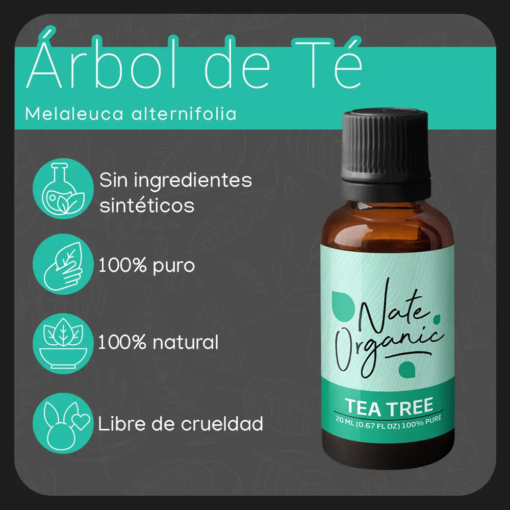 El aceite de árbol de té es reconocido por sus numerosas propiedades que mejoran la salud y la belleza. Este envase de 20 ml es perfecto para quienes buscan un producto versátil y efectivo en el cuidado de la piel, cabello y para su uso en aromaterapia.