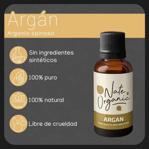El aceite esencial de argán es ideal para su uso en la piel y el cabello, proporcionando múltiples beneficios como: