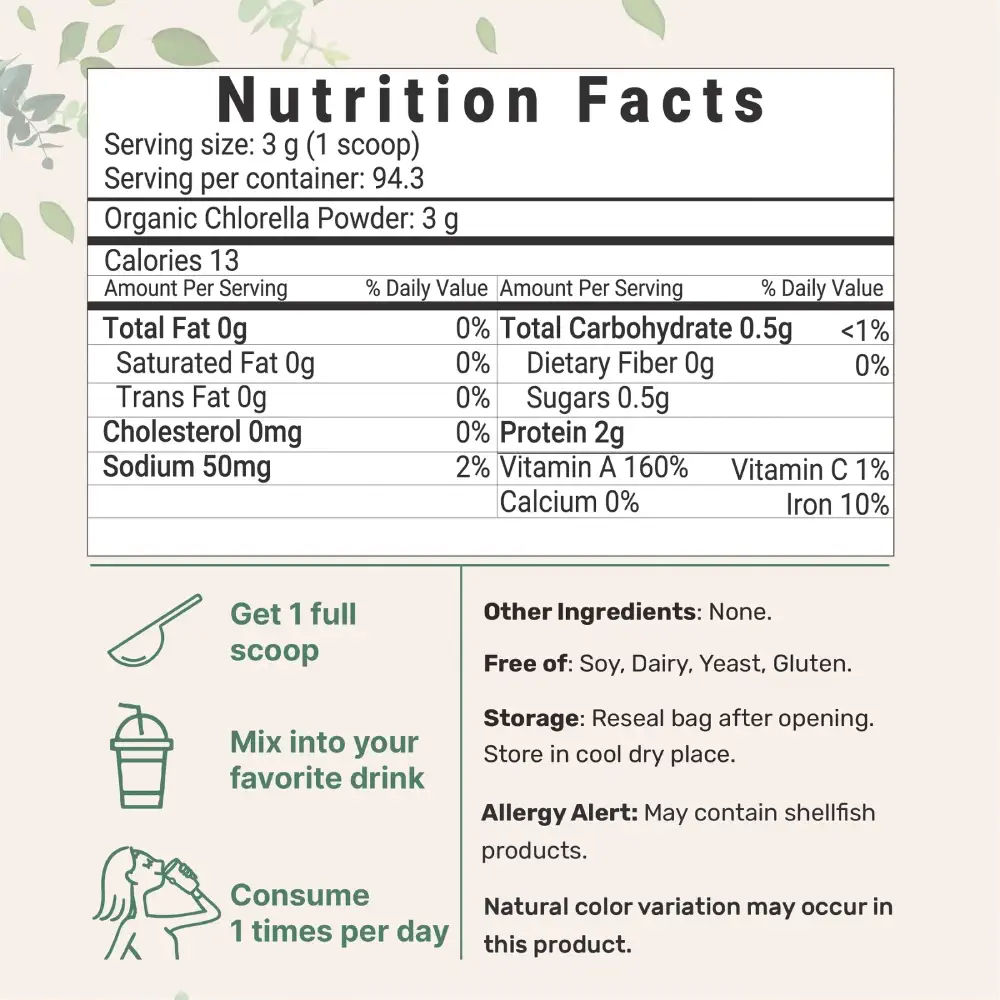 La Clorela organica es conocida por su capacidad para desintoxicar el organismo al unirse a toxinas como el mercurio y ayudar a eliminarlas, pero también es una excelente fuente de proteínas y vitaminas del grupo B muy recomendable para vegetarianos y veganos.